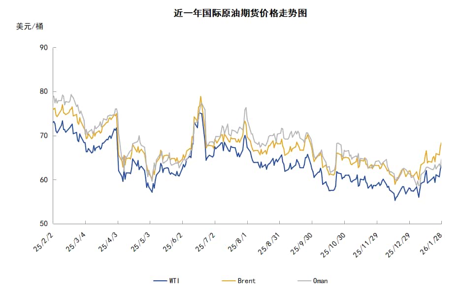 本周(1.22-1.28),原油整体呈现震荡上行的走势,周度均价环比上涨。