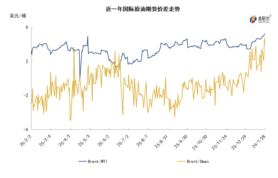 需求方面,中国第四季度GDP增长率为5.0%,符合政府目标,这增强了投资者对全球经济增长的信心,作为全球第二大石油消费国,中国需求的稳健回暖直接刺激燃料需求预期。此外,正在席卷美国广大地区的冬季风暴带,令柴油因取暖需求上升而出现自11月份以来最大涨幅。印度炼油商信实工业再度从俄罗斯采购原油,预计将于2月和3月交付,反映出俄罗斯原油出口在制裁环境下仍保持一定韧性。