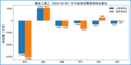 据美国商品期货委员会公布的2024-03-05期货市场头寸持仓报告显示,上周各货币的报告总持仓情况如下:欧元净空头变化3182手,澳元净多头变化281手,英镑净空头变化316手,日元净空头变化4751手,加元净多头变化5460手,纽元净多头变化1813手,上周总持仓多空转换的货币有:加元。除此之外,单向总持仓变动超过20%的货币有:日元。