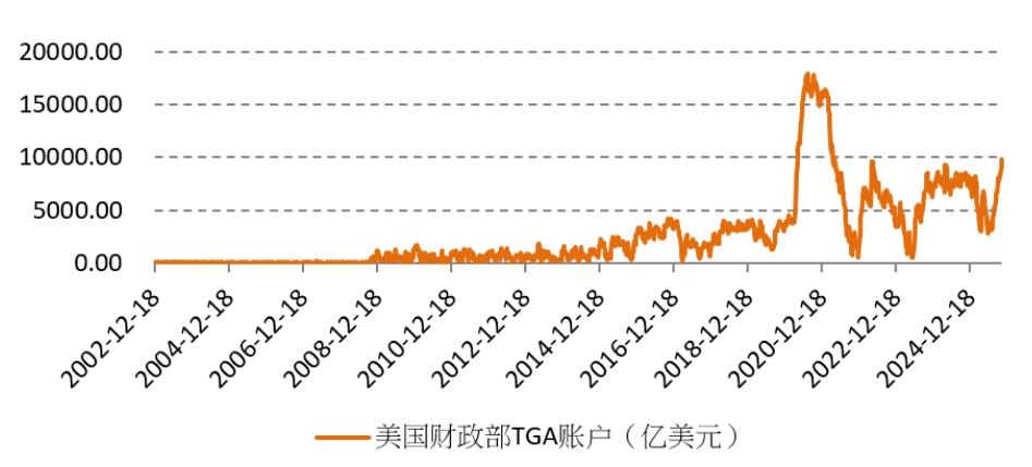 美元流动性紧张的主要原因是美国政府“停摆”导致财政部要保持较高的现金流动性,不断从市场吸取流动性。美国金融流动性由三部分组成,分别是美联储持有证券或借款、财政部现金账户(TGA)以及隔夜逆回购(ONRRP),三者之差近似为银行准备金。自债务上限解决后,财政部发债以补充TGA账户,TGA余额从6月的2608亿美元抬升至10月29日的9839亿美元。