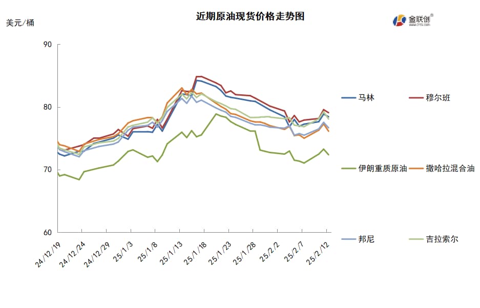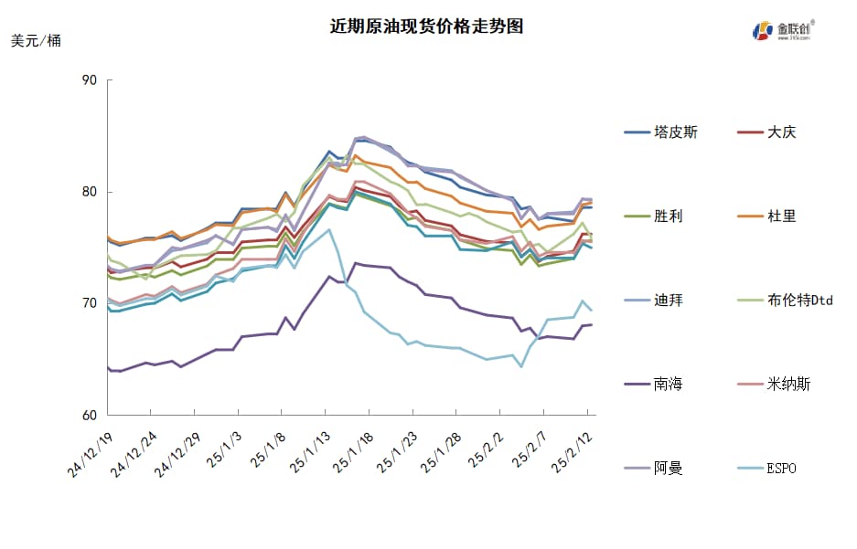 本周,国际原油现货均价环比上涨。中东原油市场方面,商家抑制交易,等待更多中东厂商公布新一轮原油官方售价。阿布扎比国家石油公司表示,穆尔班原油的3月官方售价为80.22美元/桶,之前2月官方售价在73.28美元/桶。委内瑞拉国家石油公司(PDVSA)的文件和船舶跟踪数据显示,该公司已恢复轻质原油的进口,因为其中质和轻质原油的产量减少,为生产可出口的混合原油制造了瓶颈。亚太原油市场,沙特供应到中国的3月装原油船货量减少。在沙特将对亚洲商家的3月原油官方售价上调至逾两年高点后,中国炼厂的购买量下降。目前预计3月份交付至中国的沙特原油数量在4100万桶,之前2月份原油供应量在4350万桶。印度斯坦石油公司(HPCL)称其计划将印度南部威扎吉炼油厂的产能提高20%,以满足当地日益增长的燃料需求。HPCL公司最近将威扎吉炼油厂的产能扩大到30万桶/日,并正在寻求进一步增加。HPCL公司旗下威扎吉炼油厂的新二级装置将很快投入运营,其中包括一套350万吨/年的渣油升级装置,该装置将使其馏份油产量提高10%。该炼油厂还将投产一套260万吨/年的柴油加氢脱硫装置。