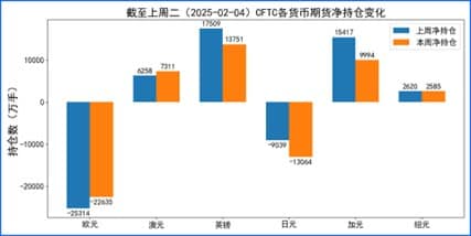 据美国商品期货委员会公布的2025-02-04期货市场头寸持仓报告显示,上周各货币的报告总持仓情况如下:欧元净多头变化2679手,澳元净多头变化1053手,英镑净空头变化3758手,日元净空头变化4025手,加元净空头变化5423手,纽元净空头变化35手,上周没有总持仓多空转换的货币。除此之外,单向总持仓变动超过20%的货币有:日元。