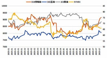 因为巴西上周销售大豆较多,且美豆主产区天气总体良好,美豆油跟随美豆下跌,国内三大油脂价格周一出现回调。截至7月21日,棕榈油主力收盘于8910元/吨,较7月初上涨6.9%;豆油主力收盘于8092元/吨,上涨1.5%;菜油主力收盘于9563元/吨,上涨1%。