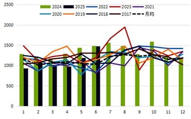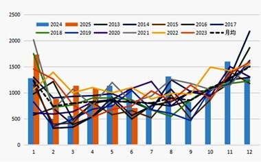 尽管油棕树有花期,当月的降雨量偏少通常会产生滞后的影响,但是当月降雨偏离平均水平较多,会直接导致棕榈果质量偏轻,进而导致减产。今年1月至6月,马来西亚棕榈油产量累计达到896万吨,比2024年同期增加0.98%,产量表现继续较好。