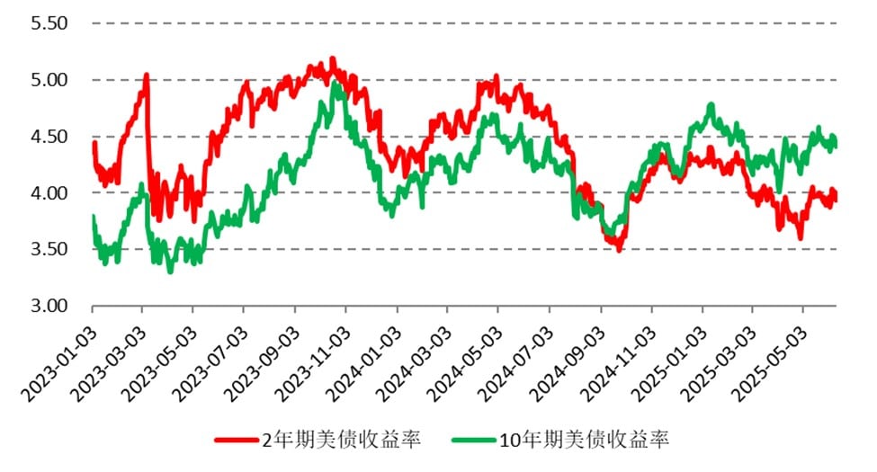 另外,美国债务问题可能需要美联储降息。美国的债务负担和利息支出已经变得“难以为继”,这意味着长期美债不再被视为真正无风险的投资。近期,市场担忧美国债务问题,美债遭遇抛售。6月6日,2年期美债收益率一度反弹至4.04%,去年同期为3.98%,4月曾降至3.6%;10年期美债收益率一度冲高至4.51%,而4月曾降至4.01%。