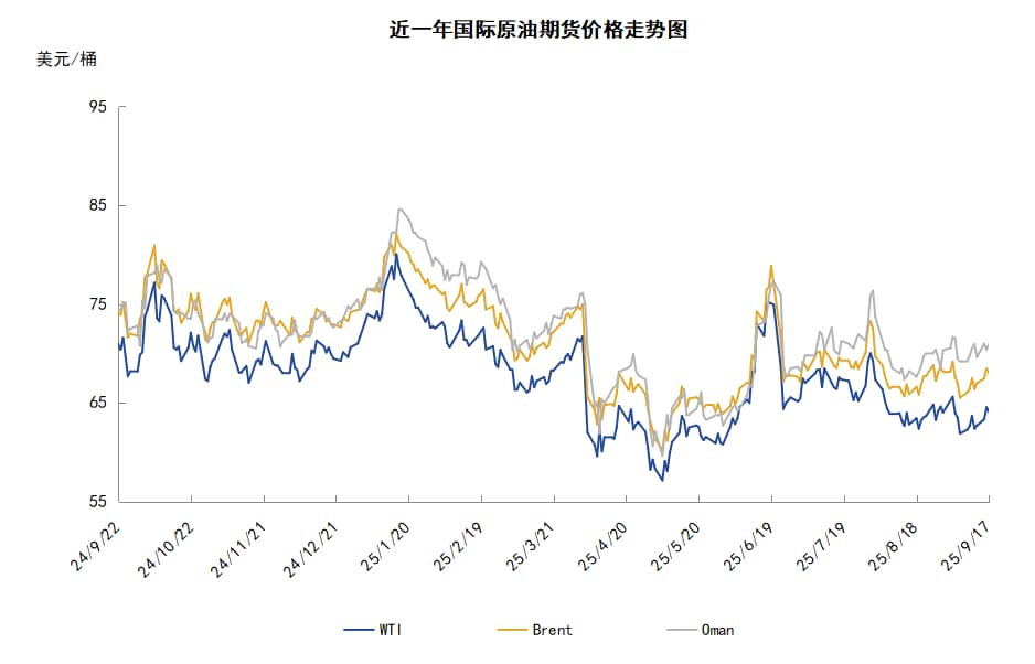 周内,投资者对俄油供应的担忧对油价起到支撑作用。乌克兰对俄罗斯在波罗的海最大的石油装运港口普里莫尔斯克港发动了无人机袭击,该港口也是俄罗斯波罗的海输油管道系统的终端,袭击导致普里莫尔斯克港内的一艘运输船和石油泵站起火,该港的石油装运被迫暂停。三位业内人士称,俄罗斯石油管道垄断企业俄罗斯国家石油运输公司(Transneft)已警告生产商,在港口和炼油厂遭袭后,他们可能不得不减产。市场机构预计,8月份以及本月迄今为止,袭击已导致俄罗斯炼油产能减少约30万桶/日。此外,对俄制裁方面,美国总统特朗普表示,美国准备对俄罗斯实施新的能源制裁,但前提是所有北约国家停止购买俄罗斯石油并实施类似措施。另外,特朗普与欧盟官员通话时明确提出,作为向俄罗斯施压的一部分,敦促欧盟对中国征收高达100%的“二级关税”,同时鼓励欧盟对印度采取类似措施。经济方面,美联储于9月16日至17日举行政策会议,宣布降息25个基点,以应对近期多项经济指标显示的美国就业市场恶化。美联储降息有助于刺激经济与能源需求增长,因此也对油价起到支撑作用。