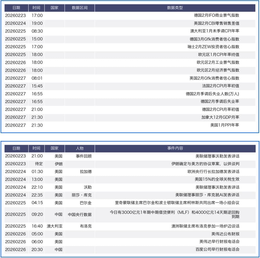 上周五(2月20日)美国最高法以6比3正式推翻特朗普依据《国际紧急经济权力法》,对全球几乎所有贸易伙伴实施的大规模进口关税举措。裁决公布后,市场短期波动加剧。短期看,贸易政策不确定性有所削弱,部分输入型通胀压力将有所缓解。但该裁决同时削弱了美国在贸易谈判中的即时施压能力,切断了美国政府一项重要关税收入来源,并可能触发天量退税,令美国财政赤字前景恶化。