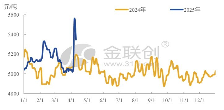 同时间段,中东离岸市场价格呈现逐步下调的走势,虽然市场讨论因关税冲突中国进口商对美国货物的需求降低,转而采购中东离岸的货物,但由于本周原油价格大幅下挫,加之远东到岸市场价格下滑明显,因此同样带动中东离岸价格本周前半段时间持续波动下行,后续因9日原油价格大幅回调,带动中东离岸价格反弹,不过幅度有限。