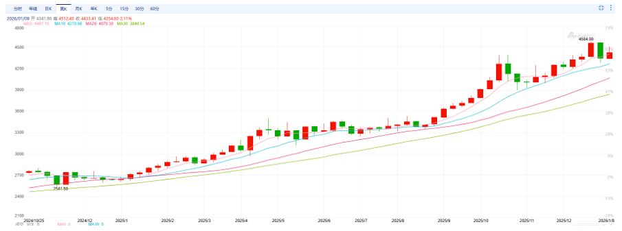“热”的一侧:是以铜、铝、锡为代表的有色金属和以黄金、白银为代表的贵金属。它们受益于AI与能源转型的长期需求故事、脆弱的供给链以及强化的金融属性,是市场主要的进攻方向。