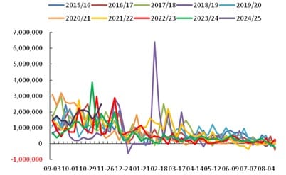 然而,进入11月份,美豆压榨利润持续转差,美国总统换届对于生物柴油政策可能产生不利影响,美国税务局将在1月公布新的税收抵免政策细节,生物柴油厂家也并没有大批量采购美豆油,生物柴油端的需求对于美豆压榨也可能会造成不利影响。12月供需报告中,美豆压榨数据向下小幅调整的可能性较大,最终2024/2025年度美豆期末库存或略有上调。