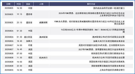 首先是美元方面,尽管目前市场已普遍预计9月降息,但这反而成为美元再度反弹的风险。尽管释放了鸽派信号,但鲍威尔并未对9月加息做出情绪表示,而此前其警告的由关税引发的通胀风险也并未完全消散,因此针对上周五的鸽派表态,市场反应可能在本周会更加谨慎,若美联储官员针对降息透漏出更为鹰派的信号,可能推动美元快速走高。
