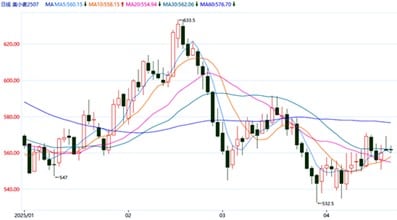 图4:2025年1月至4月美小麦2507合约走势图