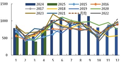通过往年数据可以发现,我国春节后豆粕基差大多是走弱的,但是也有个别年份,比如2022年和今年等。参考2022年春节后的国内豆粕行情,由于疫情导致物流受阻,油厂压榨量处于历史偏低水平,国内豆粕库存下降到30万吨的历史低位,下游不得不高价采购高价现货。2022年春节后,部分地区豆粕现货价格突破5000元/吨,现货基差接近1000元/吨,榨利改善下,油厂加快采购,4、5月份大豆到港预期增多,油厂压榨量回升,豆粕现货价格和基差逐步开始回调。