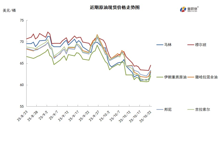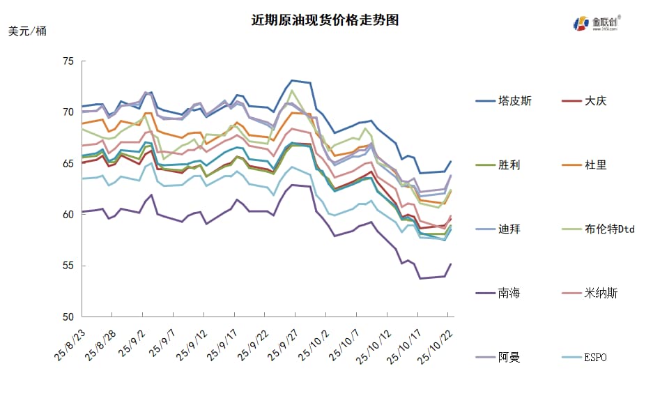 本周(10.16-10.22),原油整体呈现低位反弹的走势,但周均价环比下跌。