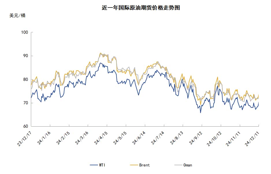 但另一方面,周内后期,中东地缘局势的不确定性增加对油价起到支撑作用,叙利亚反政府武装发表声明称已进入大马士革,并推翻了叙利亚总统阿萨德政权。叙利亚事态的发展导致中东地缘局势面临新的不确定性,国际油价受此提振反弹。此外,美国能源信息署(EIA)数据显示美国原油库存减少也利好油价,截止2024年12月6日当周,包括战略储备在内的美国原油库存总量较一周前减少70.1万桶至8.14481亿桶,美国商业原油库存量较一周前减少142.5万桶至4.2195亿桶。