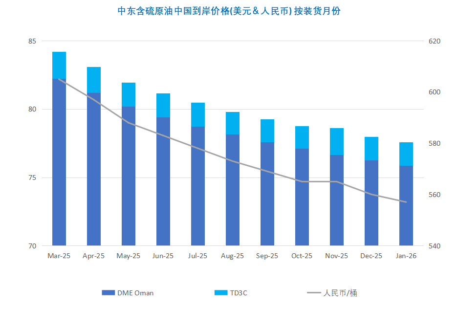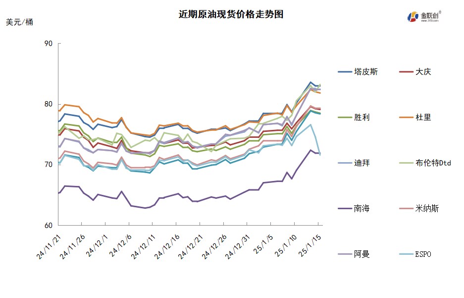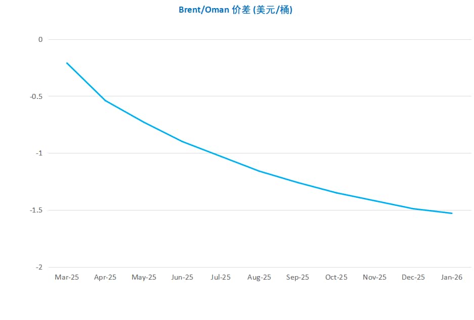 本周,国际原油现货均价环比上涨。中东原油市场方面,卡塔尔能源公司招标销售50万桶3月装低硫凝析油船货,该标书于1月14日截标。生产低硫凝析油的Dolfin项目将于3月末结束检修,使得3月装低硫凝析油供应高于2月水平。卡塔尔能源公司取消3月装脱臭凝析油船货标售,而是通过私下谈判的形式进行销售。该公司正在进行2026年脱臭凝析油合同船货交易谈判,预计2026年产量将增加。亚太原油市场,澳大利亚Santos公司招标销售30万桶1月28-29日装Van Gogh原油船货,INPEX公司招标销售两船分别于3月7-11日和3月19-23日装澳大利亚西北大陆架凝析油船货。此外,销往亚洲的中东基准阿曼原油价格触及两年多高点水平,新的制裁促使中国和印度的炼油商从中东、西非及其他地区寻求更多供应。目前,俄罗斯60%以上的海运出口石油到印度。俄罗斯的石油出口总量超过500万桶/日,约占全球需求的5%。BCS经纪公司的Lyudmila Rokotyanskaya表示,新制裁可能会在至少几个月内相当有效,并导致俄罗斯海运石油出口大幅下降以及乌拉尔原油折扣上升。