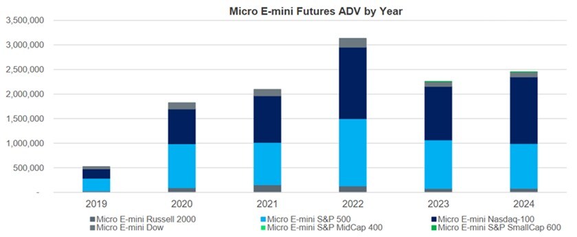 1、对冲投资风险:投资者可以通过对冲投资来降低风险。除了美股市场的投资以外,投资者也可以配置适当的衍生品来对冲风险,比如芝商所的微型E-迷你期货合约,该合约自2019年5月推出以来,已经交易超过30亿份,它的规模只有E-迷你期货的 1/10,提供了一种经济高效的方式来进入流动性股指期货市场,成交非常活跃,在2024年日均成交量超过 240 万份合约。