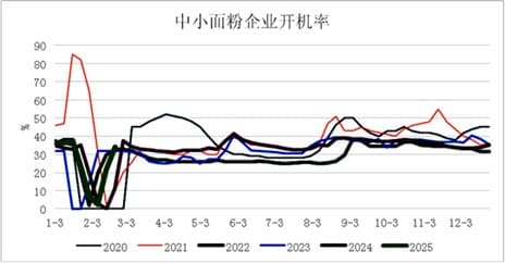 上周中小制粉企业开机呈现上升趋势。面粉企业前期库存得以消耗,企业开机率略有提升。不过随着面粉、副产品走货放缓,部分企业开机率再次下调。预计本周企业开机率维持低位水平,关注面粉需求变化情况。