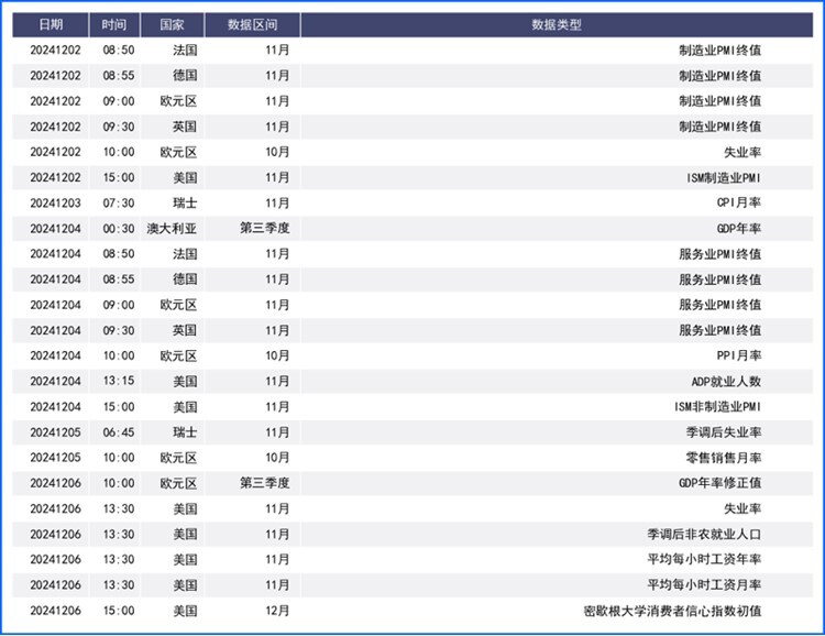 最新经济数据显示,德国11月CPI通胀率从2.0%升至2.2%,核心通胀率加速至 3.0%。部分欧洲央行成员指出,核心通胀和服务业通胀水平的升高,在一定程度上断绝降息50个基点的可能。西班牙整体核心通胀率从1.8%升至2.4%,但核心通胀率从2.5%微跌至2.4%。不过数据尚不足以改变市场对欧洲央行此前整体利率政策的预期,目前普遍预期12月12日到来的利率决议上,欧洲央行将继续降息25个基点。