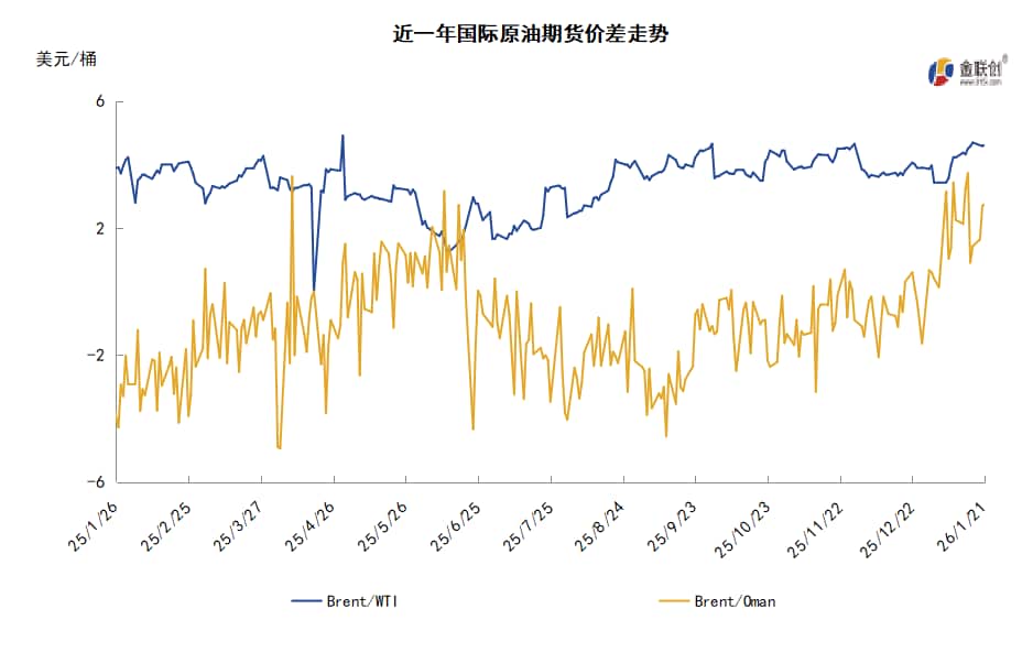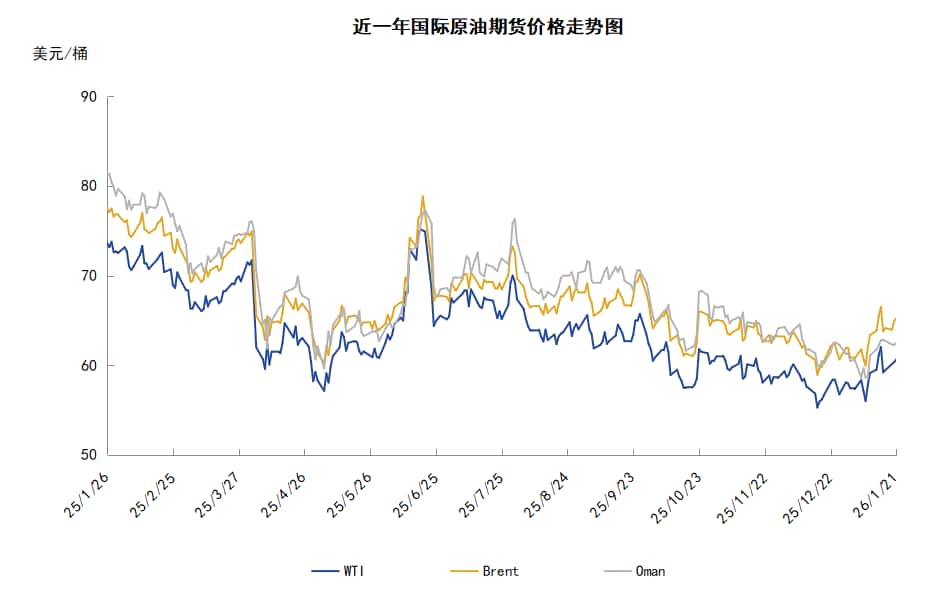 金联创预计下周(1.22-1.28),严寒天气正对馏分油需求形成提振作用,且地缘政治的不确定性仍对油市有所支撑。特朗普取消因格陵兰岛主权问题对欧洲八国征收关税,在很大程度上缓解了贸易紧张情绪。综合来看,下周国际原油价格或以震荡小涨为主。