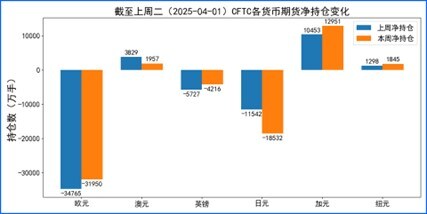 据美国商品期货委员会公布的2025-04-01期货市场头寸持仓报告显示,上周各货币的报告总持仓情况如下:欧元净多头变化2815手,澳元净空头变化1872手,英镑净多头变化1511手,日元净空头变化6990手,加元净多头变化2498手,纽元净多头变化547手,上周没有总持仓多空转换的货币。除此之外,单向总持仓变动超过20%的货币有:日元,加元,纽元。