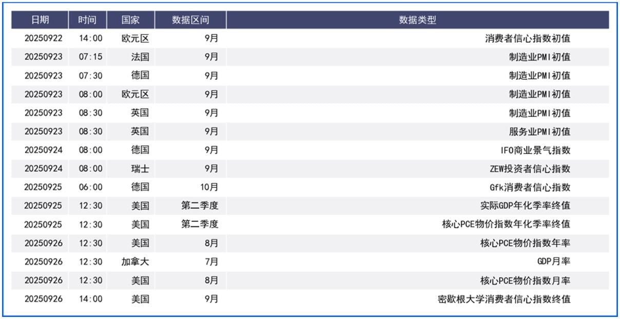 9月18日,英国央行货币政策委员会以7比2的投票结果维持基准利率在4.00%不变,符合市场预期,同时宣布量化紧缩年度规模将从1000亿英镑缩减至700亿英镑,略高于市场预期中值675亿英镑。决议公布后市场反应平稳,由于QT缩减与维持利率不变的效果互相对冲,英镑短期或将继续在当前区间震荡,但长期若经济数据如预期,预计英镑兑美元会受两国利率政策差异而走高。
