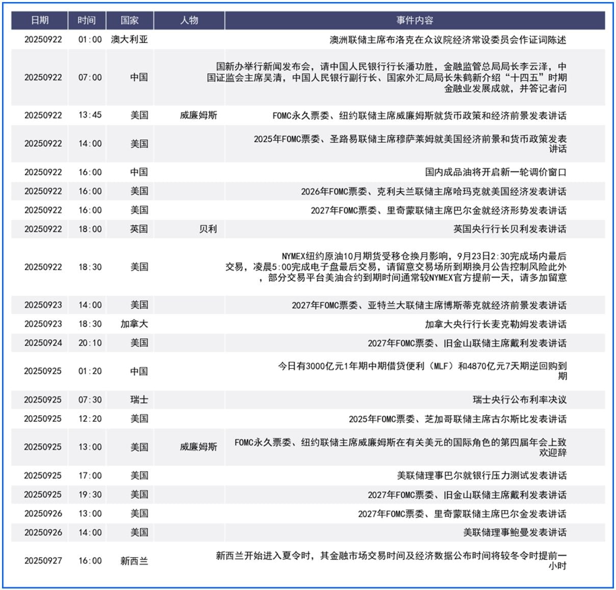摘要:回顾上周,美联储议息会议如预期降息25基点,但鲍威尔会后发言透露较强鹰派信号。非美货币方面,日本、英国央行议息会议如预期按兵不动,然而,日元由于日本央行早于预期的风险资产抛售计划而受短线提振。展望本周,全球金融市场将迎美联储静默期结束后的“政策讲话潮”,FOMC官员的密集发声成市场关注核心。同时经济数据方面欧美PMI、美国核心PCE等关键经济数据也将公布,叠加可能的突发舆情,汇价波动或将加大。