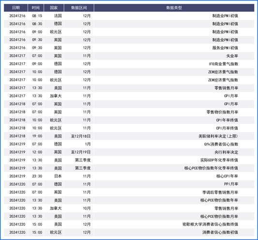摘要:回顾上周,美元终结回调并恢复上行,连续五天收涨,其他非美货币则有不同幅度的下跌。展望本周,将迎来2024年底前的最后一个央行周——美联储、英国、日本央行均将公布利率决定。作为美联储2024年最后一次利率决议,尽管市场已经对降息25个基点达成了接近100%的预期,但具体的措辞声明和鲍威尔的发言,仍将对美联储2025年的政策倾向为市场提供更多线索。