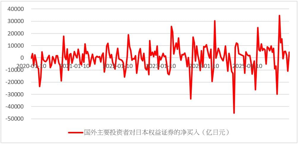 图为海外投资者对日本权益证券的净买入量