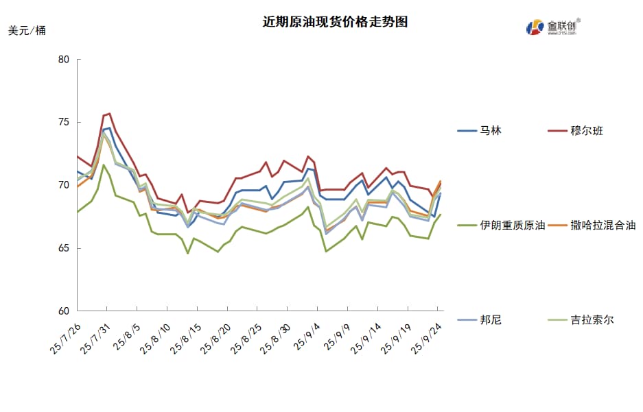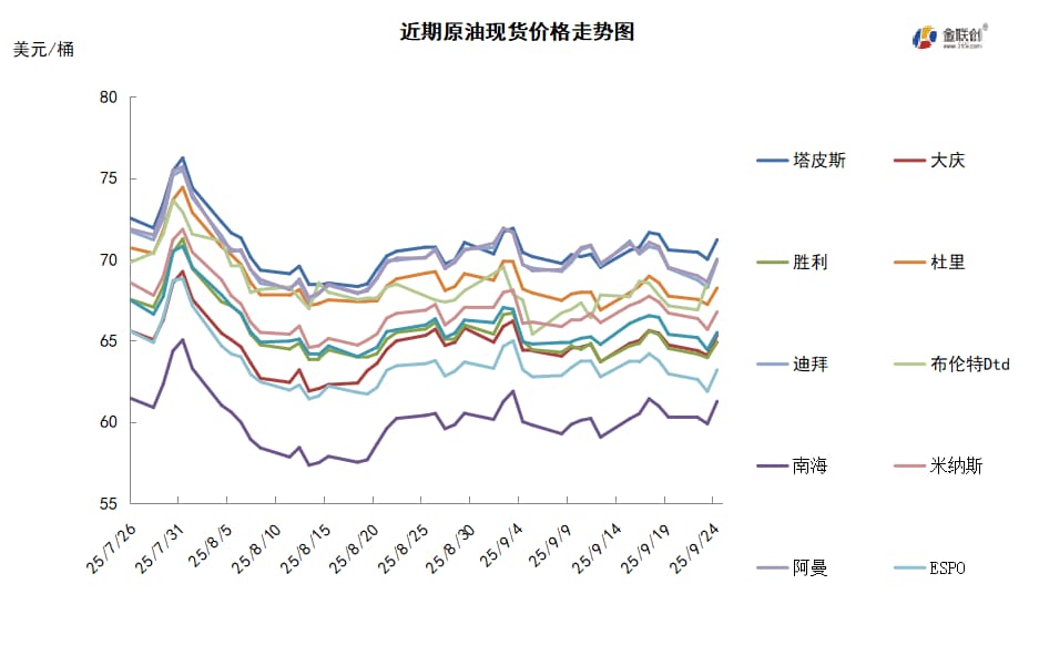 金联创预计下周(9.25-10.1),虽然欧盟提交了对俄第19轮制裁提案,但长期的制裁已令市场感到疲惫。地缘政治是短期内无法调和的矛盾,虽然会作用于短期的油价波动,但无法扭转油价的长期走势。随着原油消费旺季的结束,对于基本面的权衡再度成为影响油市的主力因素,供应趋于宽松是市场的共识,并引导四季度油价整体下行。综合来看,受到地缘局势的影响,下周国际原油价格仍有震荡小涨的空间。