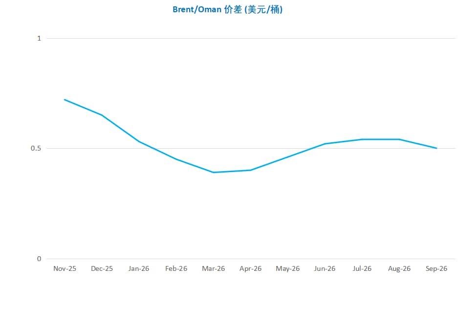 本周,国际原油现货均价环比涨跌不一。中东原油市场方面,11月装中东原油的现货价格下跌,因为市场担心供应过剩以及流入亚洲的美国原油增加。尽管最近油轮运费的飙升已经导致大西洋盆地至亚洲的原油套利窗口缩窄,但是,中东原油市场仍面临来自大西洋盆地套利原油的竞争,因为美国套利原油继续流向亚洲市场。而且,美国强劲的出口需求推动其WTI原油的升水价攀升至数月高点。从最近亚洲炼油商的购货标书可以看出,这些亚洲炼油商仍在购买美国原油船货。台中油公司通过标书购买了200万桶12月到货的美国WTI原油船货。10月装伊拉克巴士拉中质原油供应和需求基本面宽松,这导致其交易价大幅下跌。巴士拉中质原油起初的交易价为每桶对官方售价持平,后来跌至每桶对官方售价贴水0.4美元。11月装拉布安原油的现货价差攀升,据悉,11月装拉布安原油的交易价为每桶对即期布伦特升水大约7美元。许多亚洲商家目前优先购买运输距离近的区内原油,这些商家不愿意购买套利船货,因为最近超级油轮的运费飙升。此外,由于石脑油和柴油的裂解价差表现坚挺,所以许多商家上调了拉布安原油的估值。亚太原油现货市场,越南PV Oil公司通过标书销售20-25万桶11月22-28日装Rang Dong原油船货给BSR公司。市场关注点也转向了11月装Ruby和SV-DN原油的标书结果上。印尼国家石油公司不久将为TPPI额外发布一份购买11月装凝析油船货的标书。该公司已经为TPPI公司各购买一船马来西亚Bintulu凝析油船货和赤道几内亚Bintulu凝析油船货。