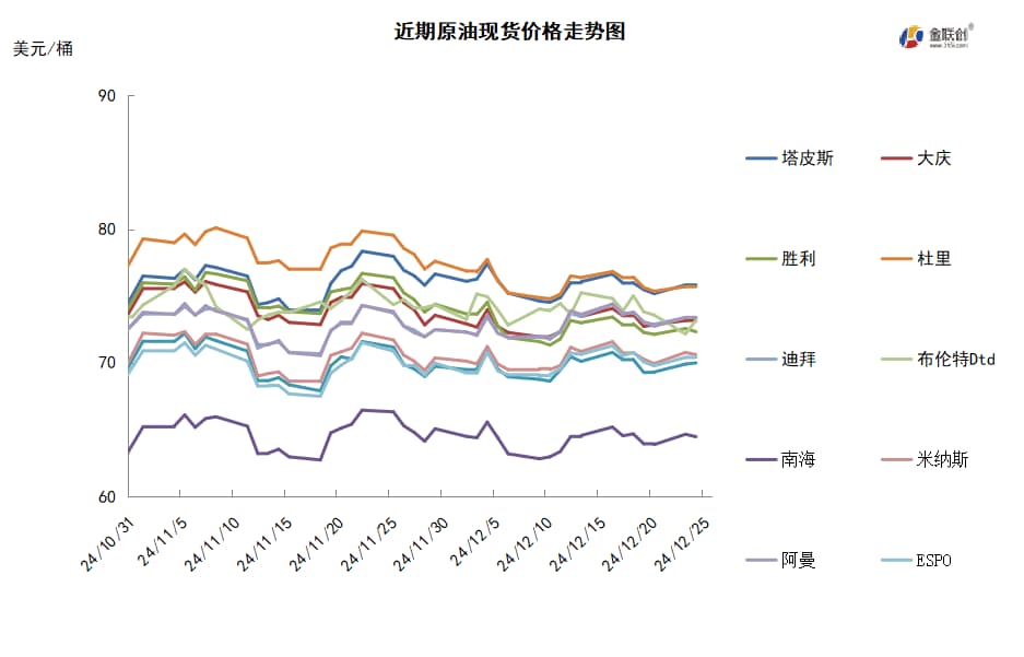 金联创预计下周(12.26-1.1),随着“双旦”的到来,石油市场的交投气氛趋于清淡。围绕着俄乌战争的挥之不去的地缘政治紧张局势,以及以色列与伊朗代理人的持续冲突,仍对油市有所支撑。交易员们开始权衡2025年上半年全球石油市场的基本面环境,并对中国的经济刺激政策抱有期待。综合来看,下周原油市场或继续以震荡为主。