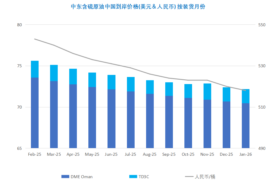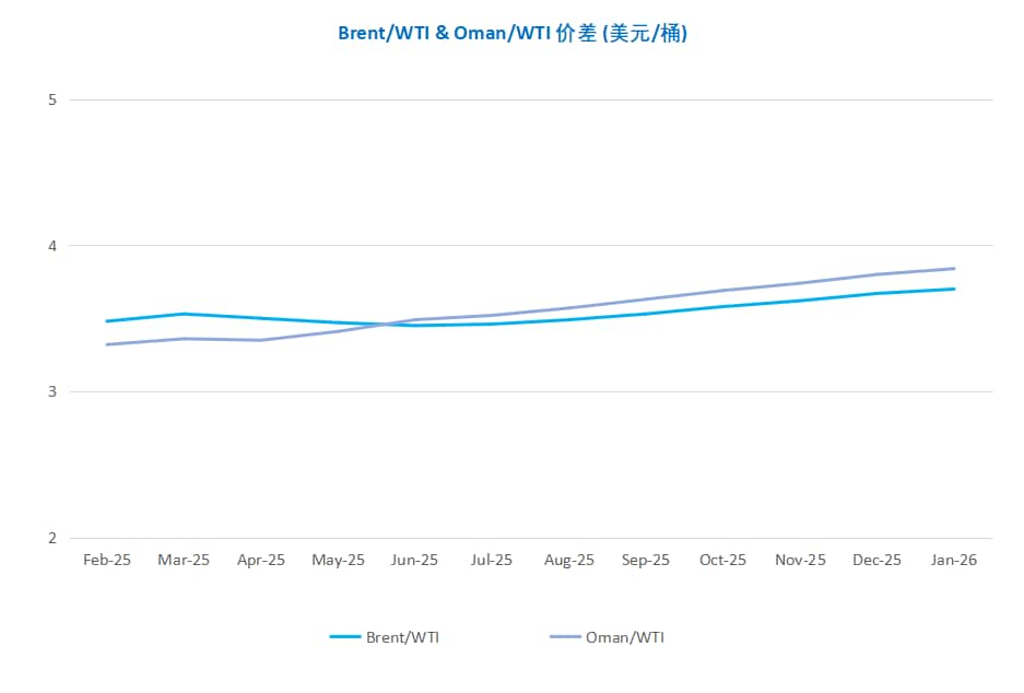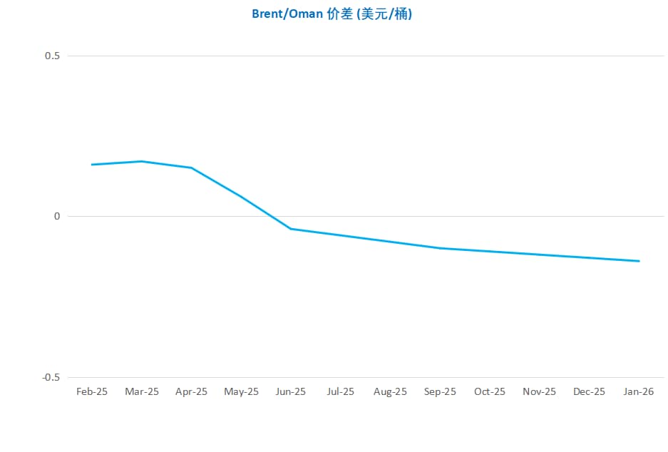 本周,国际原油现货均价环比下跌。中东原油市场方面,在圣诞节假期前中东原油现货市场达成部分交易。由于来自亚洲买家的需求好转,本月原油现货升水价攀升。上扎库姆和阿曼等中质/重质原油市场有交易达成,轻质原油的磋商没有取得进展。中东原油现货市场还有几船2月装Das和穆尔班原油船货待售。2月装埃尔沙欣原油的现货价差小幅下滑,因此前2月装迪拜原油市场疲软。然而2月装埃尔沙欣原油市场的磋商冷清,没有新的报价和交易。亚太原油市场,台中油公司通过标书购买了600万桶3月到货的美国WTI Midland原油,成交价为2月即期布伦特升水2美元中低段位,卖主分别为雪佛龙、ATC和Equnior。2月装马来西亚原油船货的现货价差下滑,因买家的购买兴趣冷淡。许多终端用户下调了Kimanis等马来西亚原油的估值,因为美国轻质原油市场疲软。2月装Kimanis原油船货的现货价差下跌至每桶对即期布伦特升水6.5美元,较12月20日的价格下滑0.58美元,因为购买兴趣冷淡。2月装Kimanis原油船货的成交价为每桶对即期布伦特升水6美元中段位。