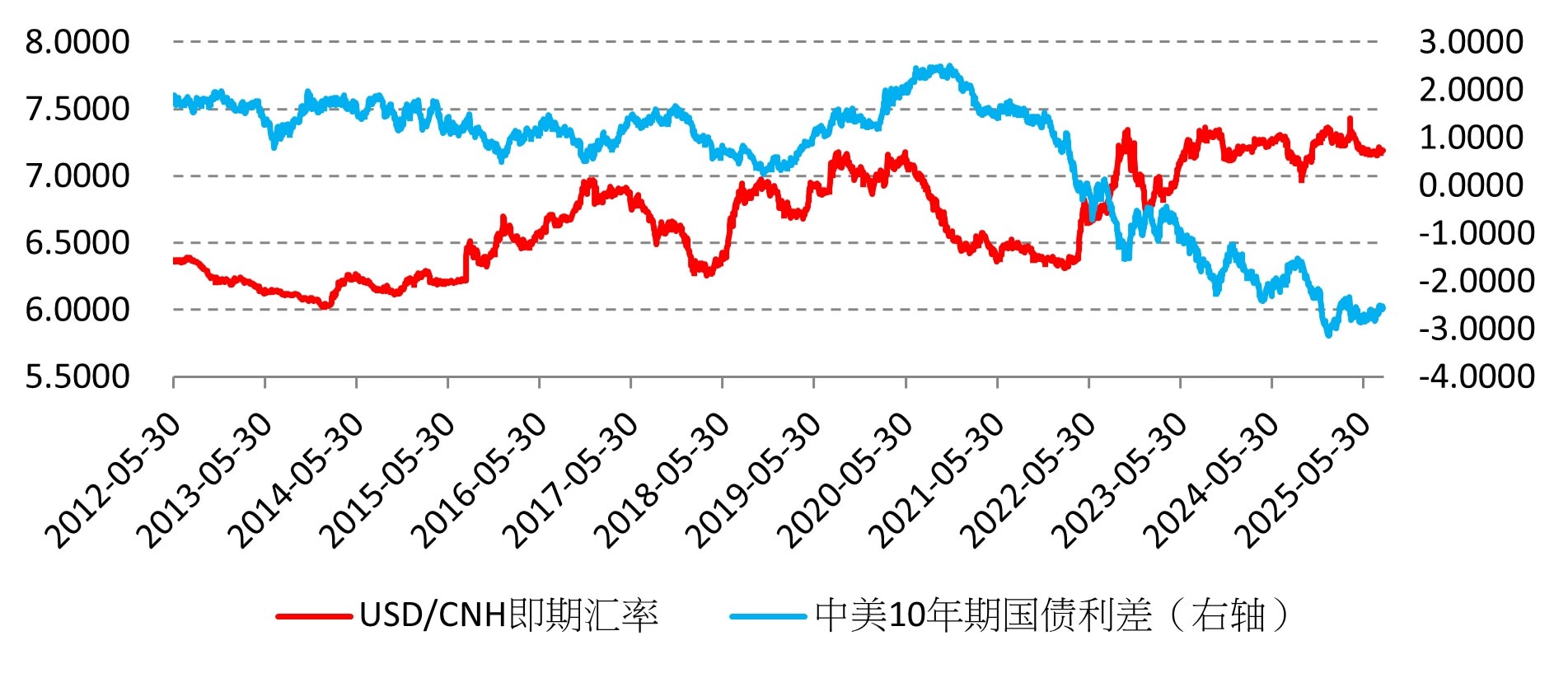 图为中美利差和美元兑人民币汇率走势对比