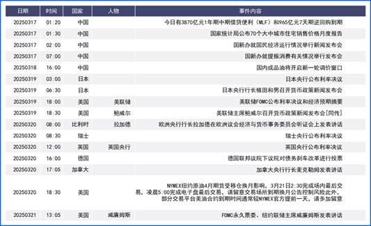 摘要:回顾上周,美元周内走出下影线小幅收跌,非美货币方面则为小幅震荡收涨。非美货币中,欧元表现相对强势,主要由于德国财政协议达成推动汇价上扬;其他G7非美货币走势相对较弱,受到英国经济数据疲软、日本央行按兵不动的预期等各国基本面因素影响。展望本周,将有日本、英国和美联储的利率决议公布,欧元区及欧洲各国的重要经济数据也将发表,预计汇价将受此影响剧烈波动,需投资者重点关注。