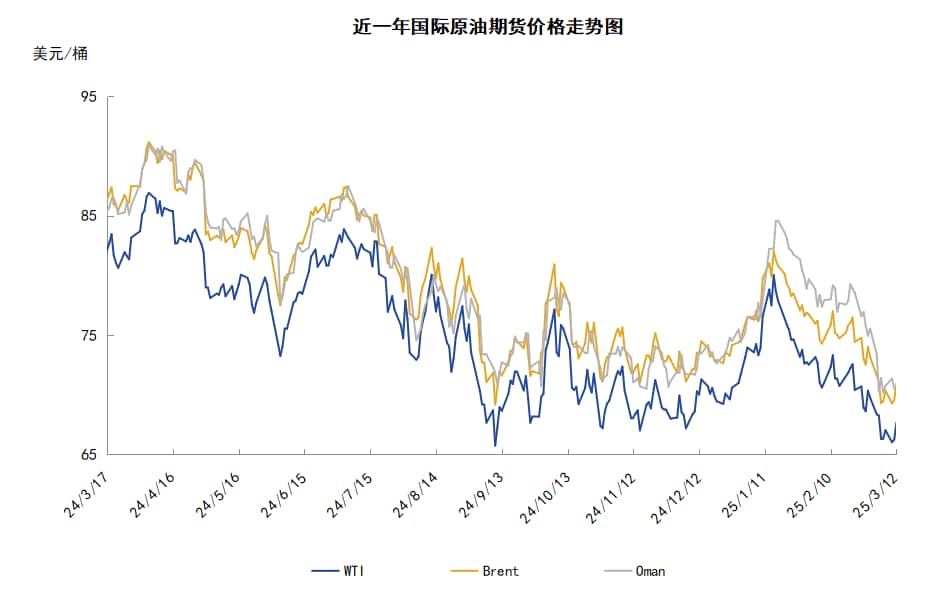 技术图上,WTI原油期货价格在当周先抑后扬。当周提振油价的主要因素:一是美国EIA油品库存超预期大幅减少;二是EIA月报预计油价将从当前低点回升;三是OPEC+根据市场情况可能逆转增产计划;四是美国计划寻求高达200亿美元战略油储;五是美国可能对俄实施新的制裁;六是美国对加拿大和墨西哥加税推迟至4月2日。当周打压油价的主要因素:一是关税战引发的经济衰退担忧;二是OPEC+从4月份开始增量。截至12日,WTI报收67.68美元/桶,环比上涨1.37美元/桶或2.07%;截至12日当周,WTI的周均价为66.67美元/桶,环比下跌1.94美元/桶或-2.82%。从技术形态上来看,标志着油价看跌为主。