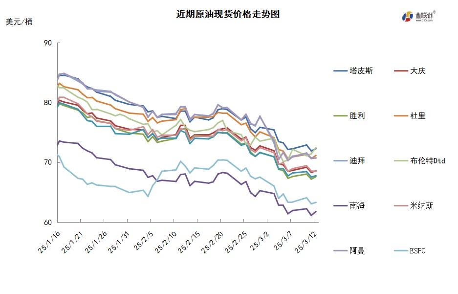 本周,国际原油现货均价环比下跌。中东原油市场方面,市场商家等待沙特阿美公布4月原油船货的供应情况。此前沙特下调了4月销往亚洲市场的原油官方售价,这是其三个月来首次下调原油官方售价。卡塔尔能源计划发布标书提供5月装卡塔尔原油,其中包括两船Al Shaheen原油,一船卡塔尔陆地原油,一船卡塔尔海洋原油。此外,船运数据显示,预期3月和4月份哈萨克斯坦CPC混合原油出口到亚洲的数量增加,因为中国和韩国买家们用这些原油来取代昂贵的中东原油。2月份,出口到亚洲的哈萨克斯坦CPC原油位于2023年10月以来的最高水平。亚太原油市场,印尼石油部长Bahlil Lahadalia在与总统Prabowo Subianto会晤后表示,印尼将在包括加里曼丹和苏拉威西在内的几个岛屿上建设炼油厂,总产能为100万桶/日,较原计划有所升级。该国最初计划建设一个产能为50万桶/日的炼油厂。他还表示,印尼还计划建造额外的100万桶储油库,以确保能源安全。知情消息人士表示,印度国有炼油商巴拉特石油公司(BPCL)计划自5月或6月开始每月寻购100万桶WTI原油,为期四个月。