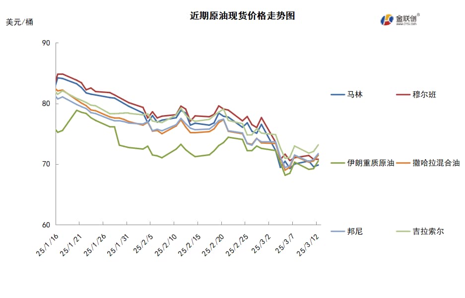 周内,OPEC原油供应增加的预期导致油价承压下跌。根据OPEC+的计划,从4月份开始,OPEC+每月将增加13.8桶/日的石油产量,直至逐步取消220万桶/日的减产。OPEC数据还显示,由于长期无视产量配额的哈萨克斯坦进一步突破了协议规定的上限,2月份OPEC+原油日产量增加36.3万桶。此外,投资者对经济以及能源需求前景的担忧情绪升温也利空油价,特朗普在接受采访时表示,部分关税可能会随着时间的推移在4月2日之后上调,投资者担心美国关税将对全球经济增长和燃料需求产生影响。
