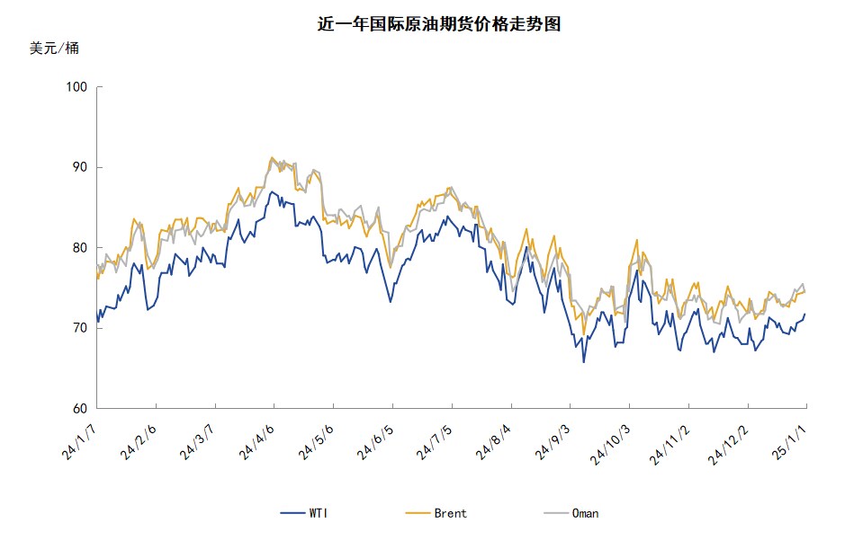 技术图上,WTI原油期货价格在当周震荡上涨。当周提振油价的主要因素:一是寒冷气候令天然气和取暖油价格大涨;二是美国EIA原油库存超市场预期大幅减少;三是中东冲突引发恐慌性买盘;四是中国或出台更多财政刺激措施。当周打压油价的主要因素:一是印度12月进口俄原油环比下降;二是年底假日交易清淡;三是美元汇率走强;四是原油供应过剩预期仍存。截至1日,WTI报收71.72美元/桶,环比上涨1.62美元/桶或2.31%;截至1日当周,WTI的周均价为70.73美元/桶,环比上涨0.87美元/桶或1.25%。从技术形态上来看,油价保持看涨。
