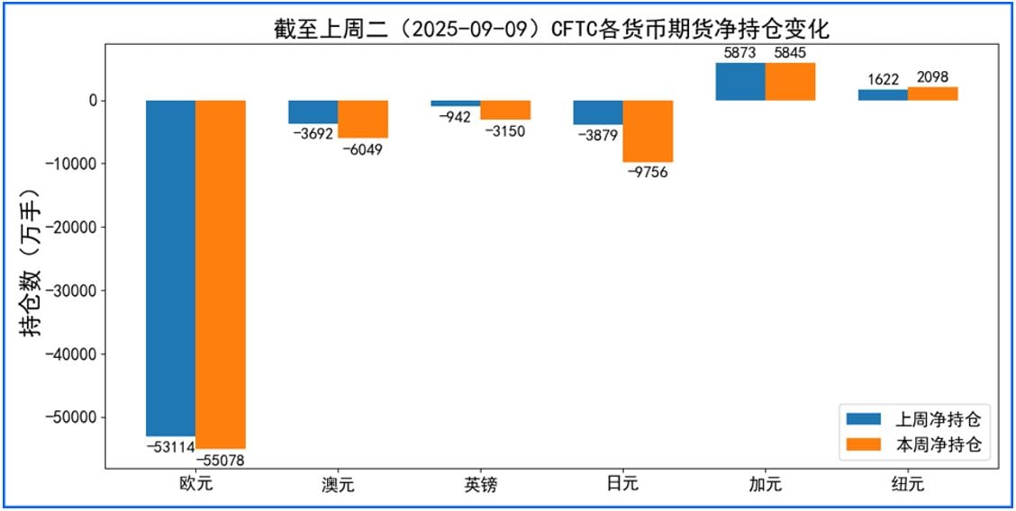 据美国商品期货委员会公布的2025-09-09期货市场头寸持仓报告显示,上周各货币的报告总持仓情况如下:欧元净空头变化1964手,澳元净空头变化2357手,英镑净空头变化2208手,日元净空头变化5877手,加元净空头变化28手,纽元净多头变化476手,上周没有总持仓多空转换的货币。除此之外,单向总持仓变动超过20%的货币有:澳元,英镑,日元,纽元。
