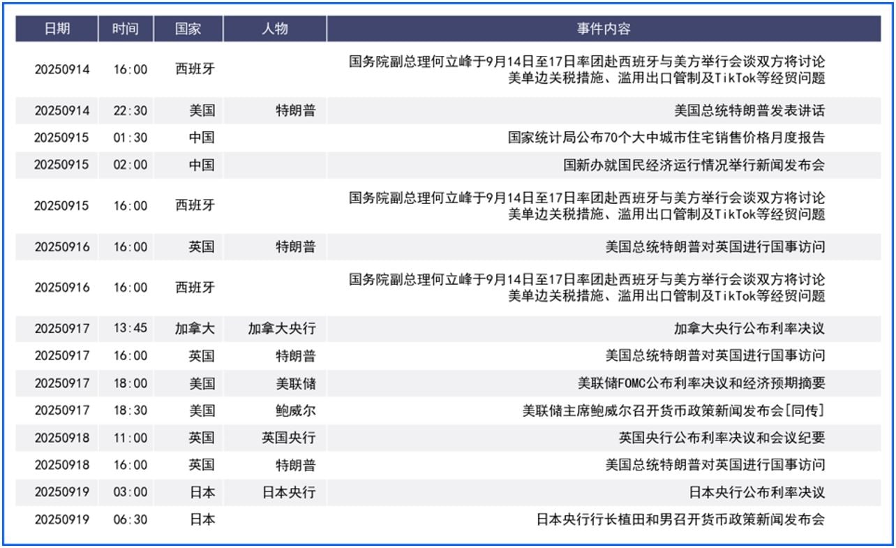 市场普遍预期本周的日本央行议息会议将维持0.5%不变,但行长植田和男的会后政策表态预期将受到重点关注,以作为年内是否可能重启加息的重要线索。关税冲突方面,日美贸易协议的落地令日本央行暂时松一口气。但副行长警示关税冲击未止,同时因美国经济疲软、美联储降息,恐引发日元升值导致的挤压出口。整体来说,日本央行的加息决策艰难,首相辞职加剧政治不确定性,负实质利率下通胀压力的存在使对加息有需求,但日元升值对出口带来的可能影响令决策更艰难。