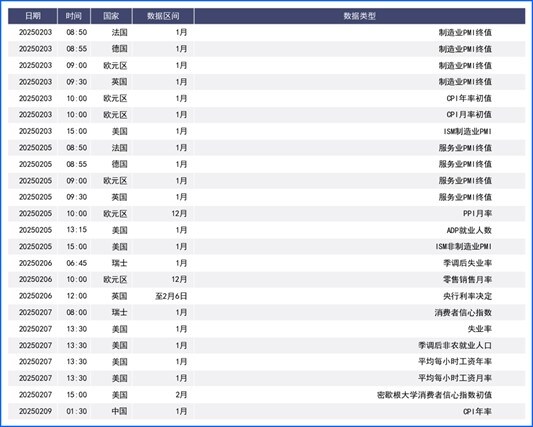 上周美元兑日元并未跟随美元指数大幅反弹,一方面是因为此前也并未跟随美元指数回落,另一方面则因为最新经济数据对日元贬值空间形成压制。最新公布的日本东京1月份通胀率出人意料大幅上升,较上年同期上升3.4%。受此影响,日本央行很可能比预期更早加息,进而提高了市场对日元的定价。同时美国关税等政治政策的不确定性,也会影响美元兑日元近期的波动。